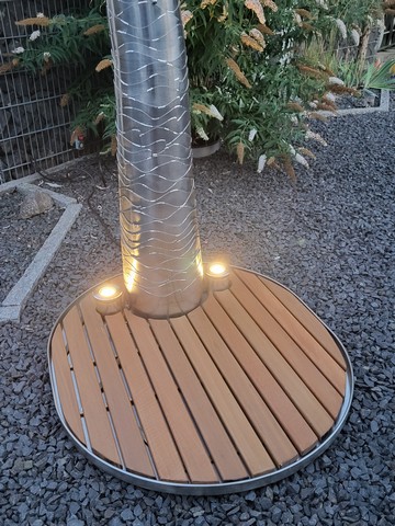 kpl. aus Edelstahl mit Sockelleisten aus Fassdauben - wahlweise mit oder ohne Kugeln bestückbar und so das ganz Jahr nutzbar - ca. 2,3m hoch
